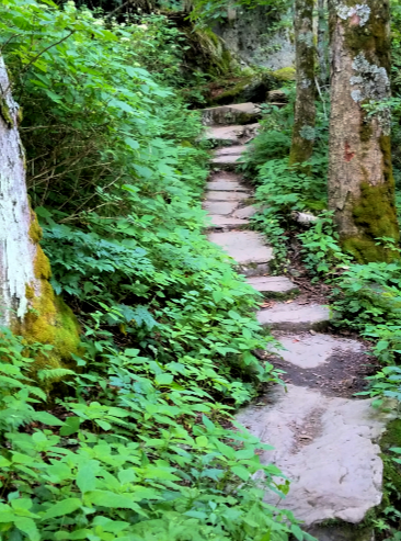 At Grandfather Trail we decide to head south toward Macrae Peak and the swinging bridge. This is an amazing walk/scramble along the ridge line, supplying us with breathtaking views of the mountains all the way to Virginia. It is also littered with boulder-strewn vertical assents that are working to break both the spirit and body. Thunderbird continues to creep ever slower and produce more and louder noises when climbing over and around the rocks. After five hours we both realize it’s time to start heading back or someone is going to be sleeping on the mountain. The trail has gotten no less easier and as his feet and ankles deteriorate Thunderbird’s pace continues to drag. It is like mountain climbing with a manatee.”  l.r. 7/13/20