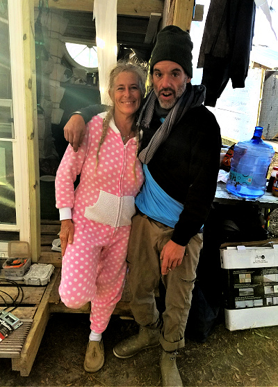 Iceman got to stay a few days with Cheese Love to help finish the paint on the installation. They remained with impunity as the deputies would drive by searching for hippies to toss. Not Cheese Love. Not this time. Boys are working.The heady trade award of the day was the tampon for the donkey onesie. Well played.