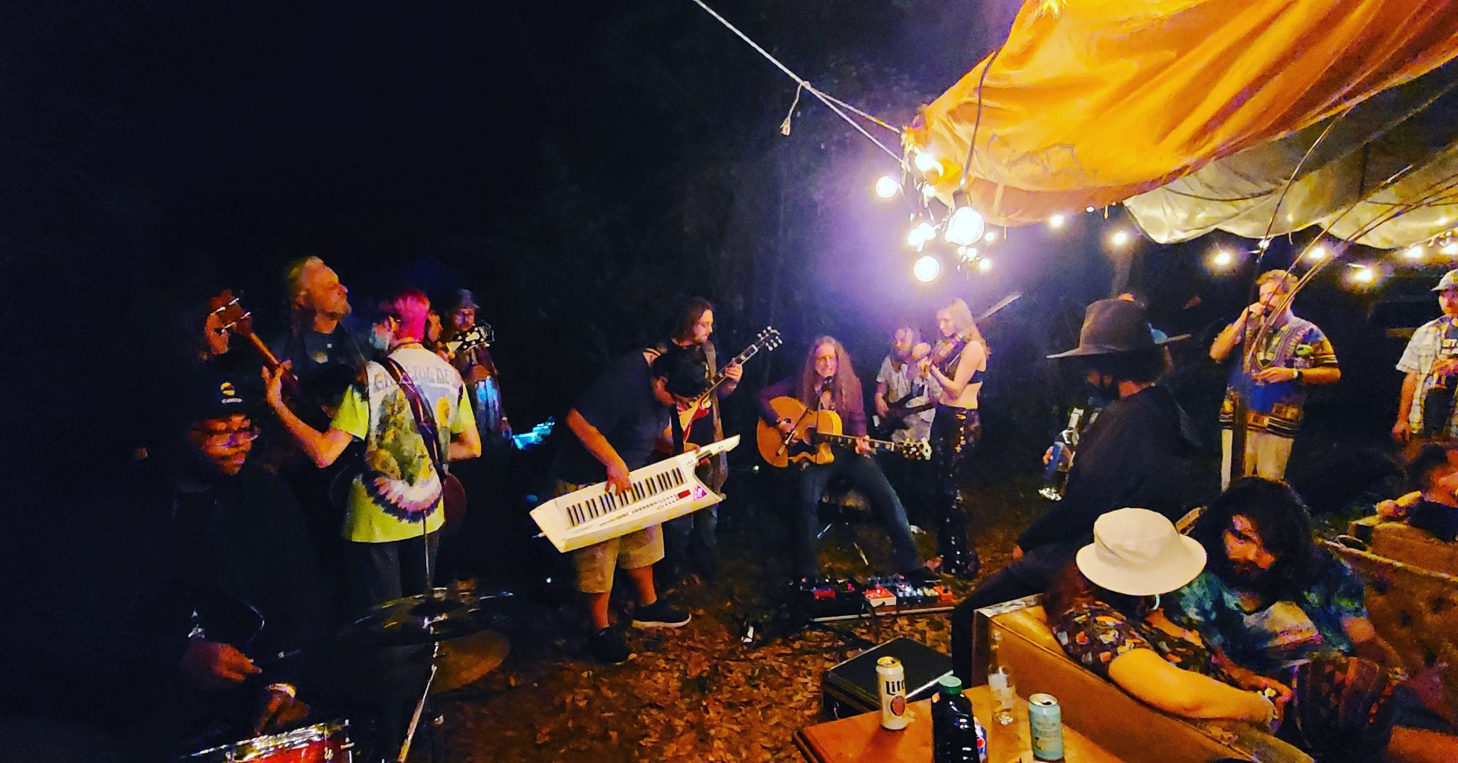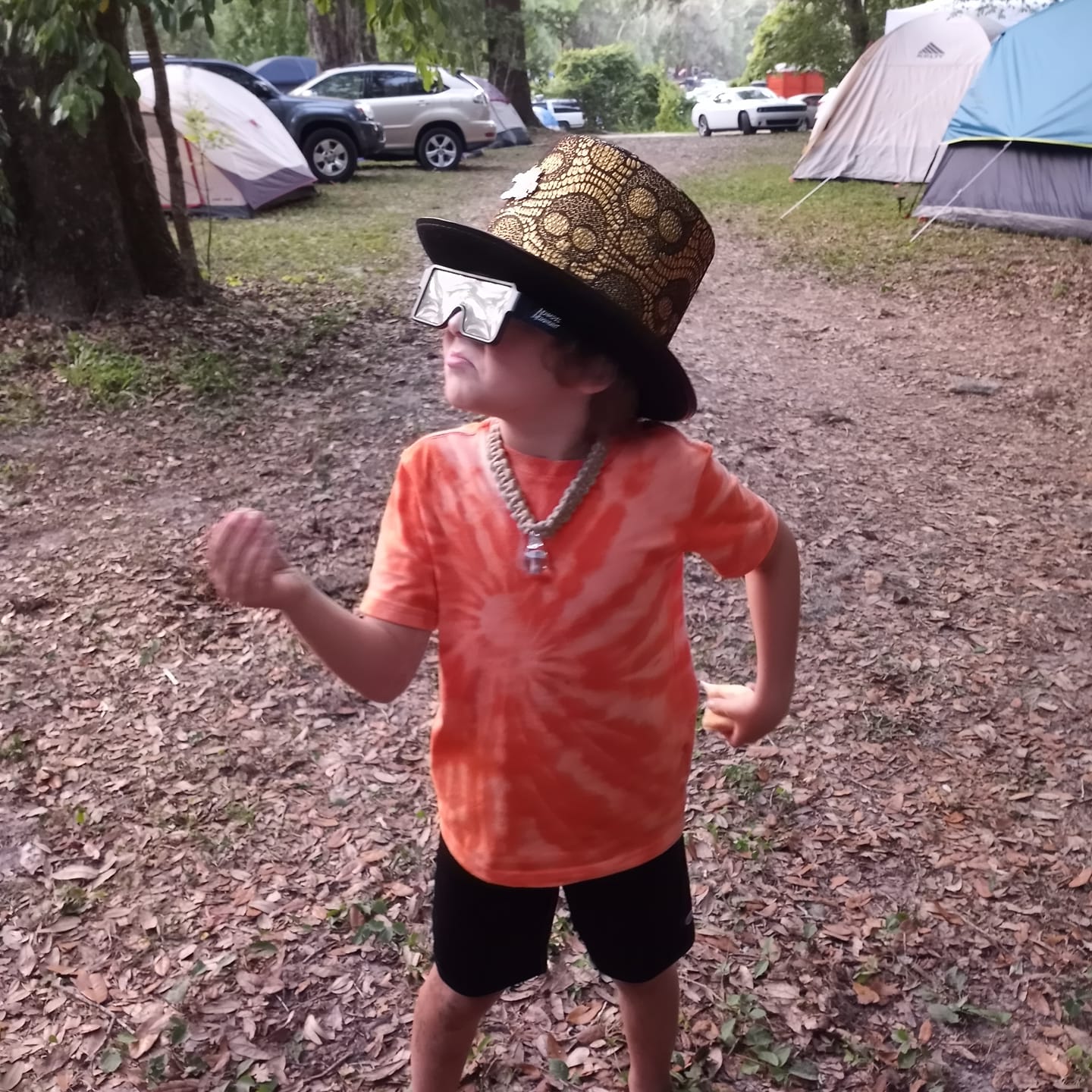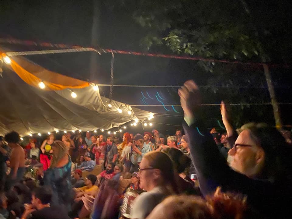 Skip to…She and Spacebug showed up early Tuesday to set up the Kamp Happiness Interactive Pleasure Compound in the shade of primitive camping. The cool weather and shady campsite was the perfect canvas on which to paint this masterpiece. Volunteering with Toby they would be there to watch the festival be born around them. Truly the best way to experience this kind of slow burn. Never miss a Tuesday show. Welcome to the Orange Blossom Jamboree: Puddle of Fun 21.