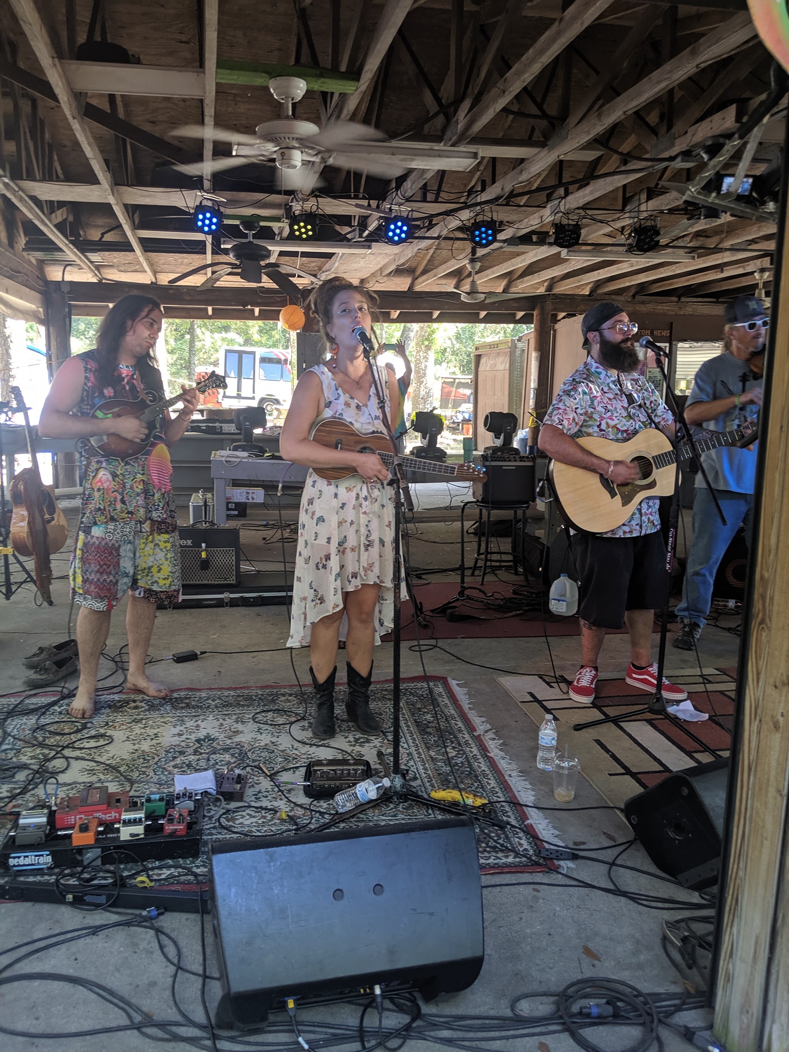 They came from all over the state and for several it would be their first shot at OBJ. Would they be able to hold it all together amidst the frenzied craziness pouring in from every direction? Dock that hippy a day’s pay for napping on the job. Erin brought the aluminum foil space caps so the aliens couldn’t read their thoughts. The Gainesville Boys, Smittisha and Bob Dylan’s cousin came south to sow the seeds of homegrown music around the fire pit. Big Betty joined in with the bass fiddle and the rest was just face lasers, walking tacos and three-part harmony.