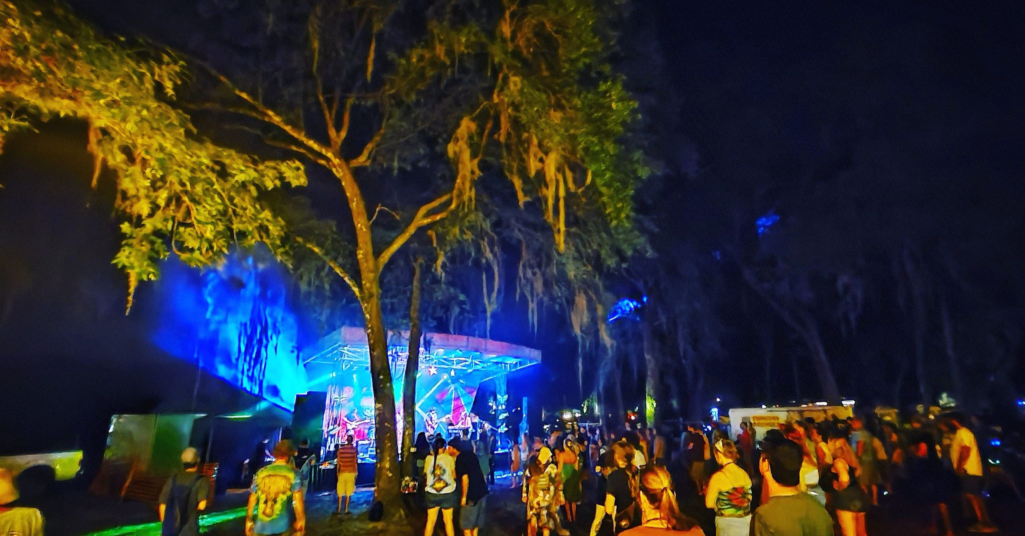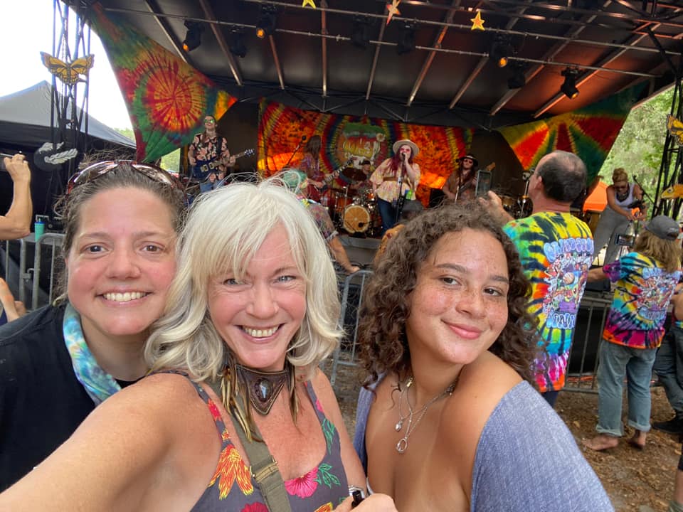 This was a bona fide jubilee packed thick with old friends, new ones, Facebook buddies that until then were only familiar names in the etherweb. Kids with dogs, crackers with guitars and hippies with crackers roamed freely decorated in every manner of ground glitter. Deadheads, bikers and every kind of fan from the pop to the greasy were in attendance in their Sunday finery. Warm showers, clean restrooms and unexpected brethren waited under the fabulous shade of the oak trees. For many folks this would be there first time back into the fray in more than a year and it was obvious they had some catching up to do.