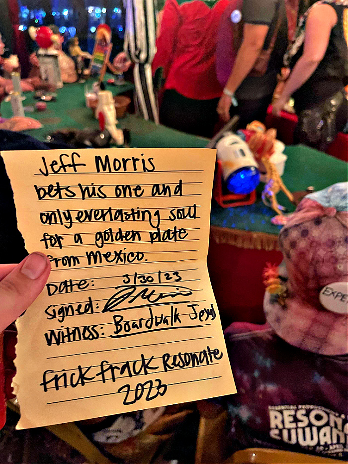 Frick Frack: Opuio was blasting nearby as Emma and Baitbucket arrived at the blackjack table. He split sixes against the dealers four, not really in the book but one has to play outside the rhombus when dealing with these kinds of madcaps. Pedro showed up with incendiaries smuggled in her bosom and Krissy came out on top betting some heavy silverware. Emma managed to fleece the table and walked away with treasures galore. Shifty crooks, all of them. They won’t think twice to take a soul but they’re afraid of losing them from the briefcase. If soul gambling has become an addiction for you, get help.