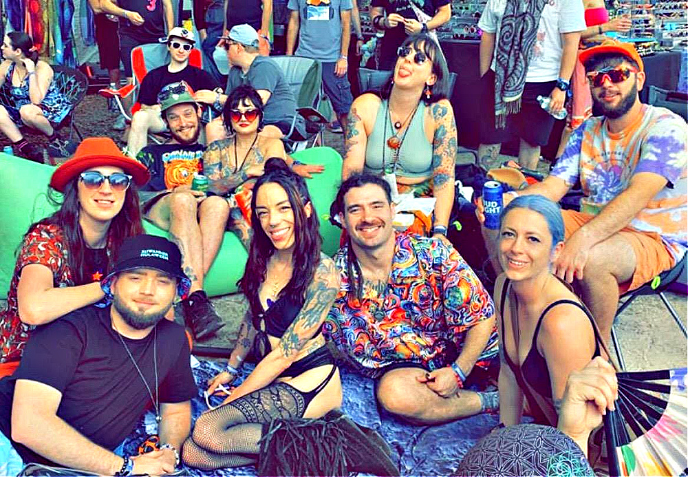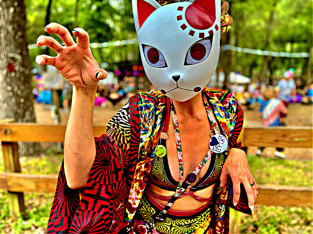 The Atlanta crowd invited everyone to Hive Mind where Martha Firewalker got into a scuffle with a hammock with a powerful tractor beam. She could be heard screaming, “It’s trying to eat me!” over the STS9 set. Lucy found her way to the Mi Kulture tent, perfectly situated in front of the Amphitheater Stage. She’d begun to enjoy shows from the back fence next to the road. The second rail. The rail for the old people where one can enjoy the music and catch traffic along the road. She caught a reflection of herself and realized she’d forgotten about the raccoon face tattoo she’d suffered earlier. The one on JBfly’s chest looked professional but Lucy’s resembled an unfortunate case of frostbite and yet another way for the authorities to identify her. Once you join the mapaches, es for life ese.