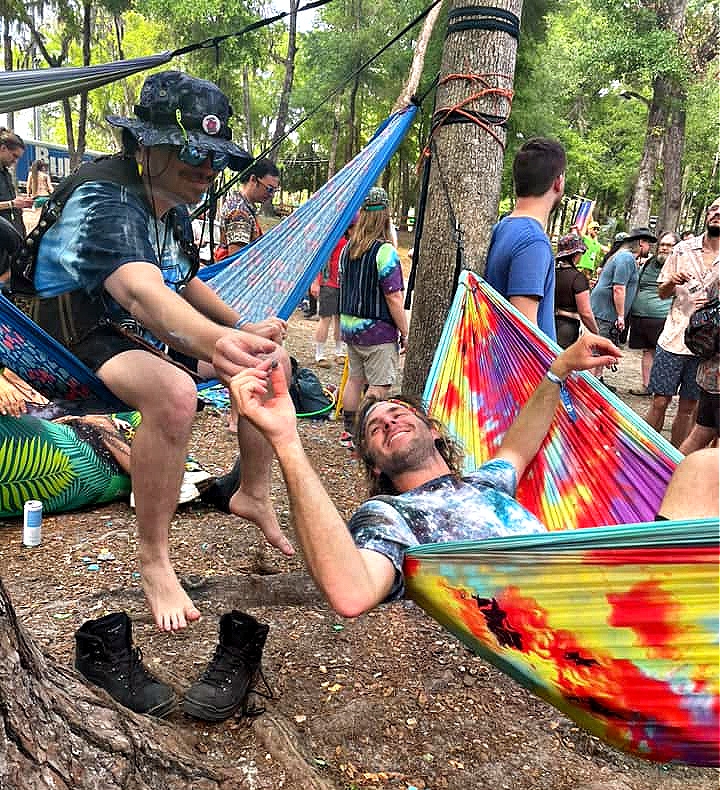 Wednesday Turnaround: They had only been gone from the park a few days since the hoedown that was Suwannee Spring Reunion the weekend prior. Several of the camps had left their tapestries up and decided to roll on through to Resonate and why not, aces back to back. Holly saved the spot by the Bill Monroe Pavilion and Kamp Happiness rolled right up to the street with the kind of central address that attracts attention, wanted and unwanted. Peanut butter-banana smoothie? They were joined by Mikey, Regina the crazy Argentinian, Pedro the Mexican thief and Spider Master Kush. The Atlanta crowd had taken over the pavilion so the wooks were pushed back out into the night where they belonged. They’d been saving firewood for days so they were set for the week and the forecast called for perfect weather and entirely sideways fun.